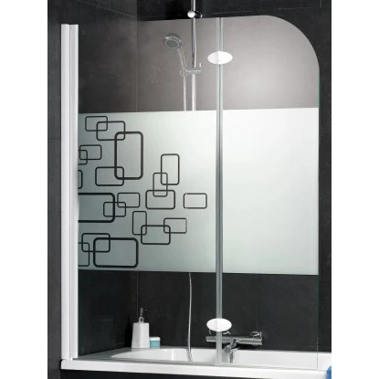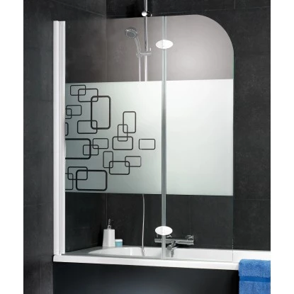 Die rahmenlose 2-teilige Badewannenfaltwand besitzt moderne Scharniere in Chromoptik. Das Echtglas-Dekor Softcube verleiht der Badewannenfaltwand einen modernen Look.