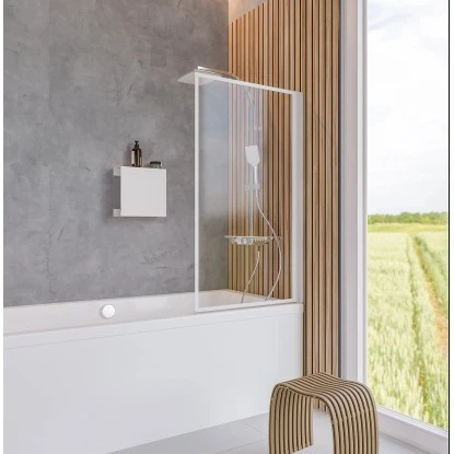 Mit der ansprechenden einteiligen Schulte Badewannenfaltwand Komfort der Edition White Style erhalten Sie eine sowohl ästhetische als auch zuverlässige Duschabtrennung für die Badewanne.