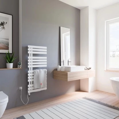 Der steckerfertige Schulte Badheizkörper Breda mit Heizstab 5 wird Ihre Räumlichkeiten stets zuverlässig wärmen. Der Handtuchwärmer wurde aus hochwertigen Materialien unter streng geprüften Bedingungen hergestellt. Neben seinen beeindruckenden technischen Werten punktet der Wärmekörper Breda außerdem mit seiner besonderen Optik. Das von Asymmetrie geprägte Design strahlt Exklusivität aus und verleiht jeder Einbausituation einen modernen Eyecatcher.