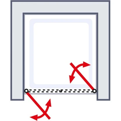 Die Schulte Pendeltür Toura besteht aus zwei 8 mm starken Glaselementen (Sicherheitsglas, ESG), welche mit je zwei pendelbaren Scharnieren an wiederum zwei eleganten, schwarzen Wandanschlussprofilen befestigt sind. Diese Türelemente sind mit Hilfe von zwei formschönen Türgriffen, die ebenfalls in modernem Schwarz überzeugen, flexibel nach innen und nach außen zu pendeln. Diese praktische Konstruktion ermöglicht etwa das einfache Auslüften des Duschbereichs nach dessen Nutzung, ohne die Duschtüren in den Raum zu bewegen.